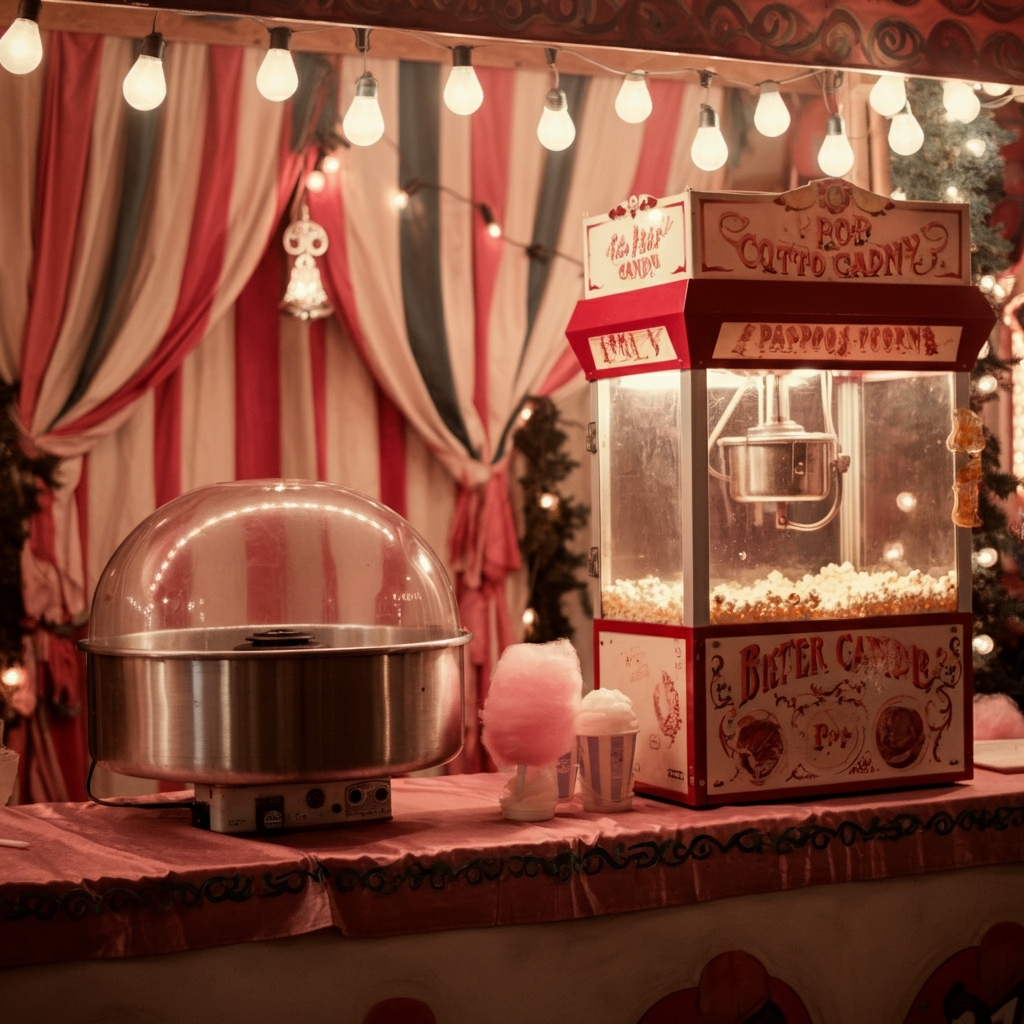 Turn any gathering into a festival with our concession selections: Popcorn Machine: Classic kettle corn or buttery movie-style popcorn Cotton Candy Machine: Fluffy, colorful cotton candy for all ages Ice Cream Truck: Vintage-inspired truck stocked with assorted flavors and topping